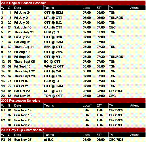 After Calgary it's Toronto on September 28th, and then finally back home against Hamilton on the 7th. The question is, will the season be over by the time the team gets back, or will the back-to-back games against Hamilton be about securing a playoff spot? Fortunately for Ottawa fans, the upcoming road games are both scheduled for TSN, so we'll have the chance to find out on the tube.